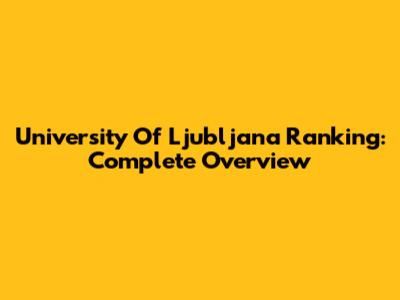 University Of Ljubljana Ranking: Complete Overview