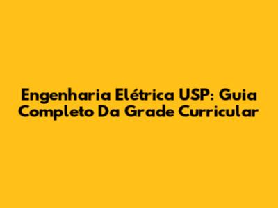 Engenharia Elétrica USP: Guia Completo Da Grade Curricular