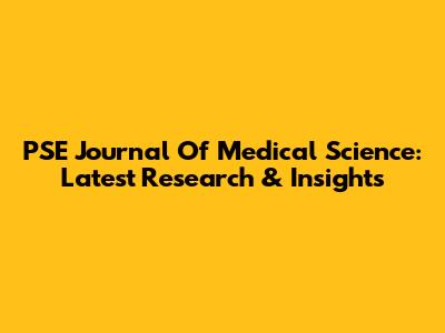 PSE Journal Of Medical Science: Latest Research & Insights